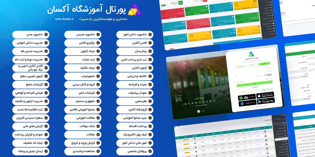 - و دیگر مکانات کاربردی برای مدیریت آموزشگاه شما